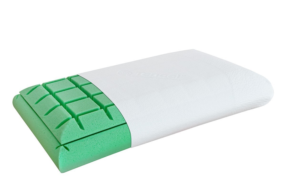 Poťah vankúša je z inovatívnej látky TENCEL®. Tencel je lyocelové vlákno získavané z botanických surovín. Je známe svojou schopnosťou regulovať vlhkosť. V porovnaní s bavlnou je absorpcia vlhkosti u tenclu o 50 % lepšia, čo znamená, že udržiava pokožku suchú. Ďalšia výhoda je hladká štruktúra, vďaka ktorej je vankúš hebký a jemný k pokožke. Toto vlákno je prirodzene odolné voči baktériám. Vďaka svojej schopnosti riadiť vlhkosť sa na povrchu vlákien nedrží vlhkosť, která by podporovala rast baktérií. Vlákna TENCEL® sú šetrné k životnému prostrediu, pretože takmer 100 % použitého materiálu pri výrobe sa recykluje. Táto inovatívna metóda výroby bola ocenená Evrópskou cenou za životné prostredie.