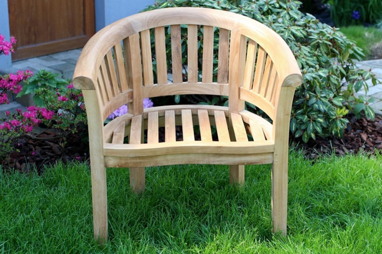 Pohodlné dřevěné křeslo z teaku Banana/Peanut zaujme nejen tvarem, ale i svým prostorem pro sezení.
