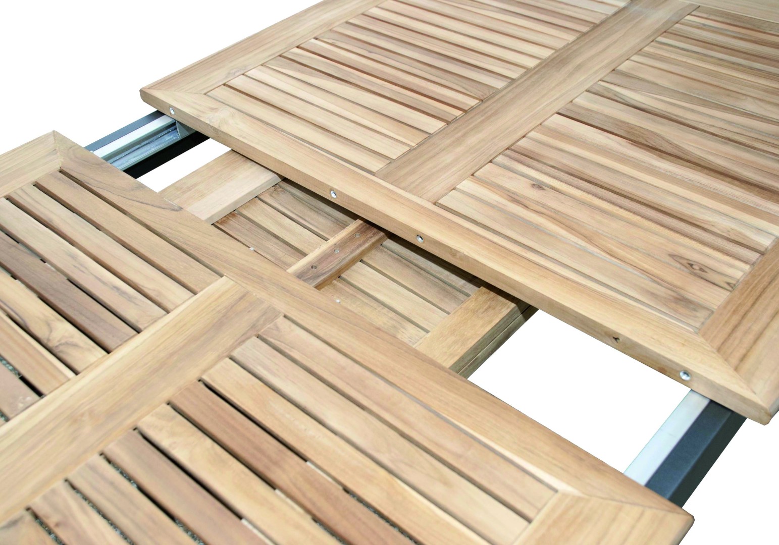 Luxusní rozkládací zahradní stůl CONCEPT značky DOPPLER je příkladem spojení funkčnosti a designu v dokonalý celek. Díky desce z exotického teakového dřeva stůl nadchne všechny příznivce přírodních materiálů. Avšak zároveň se jedná o lehký a stabilní nábytek s odolnou hliníkovou konstrukcí. Zabudovaná deska umožňuje stůl jednoduše rozložit až do délky 210 cm. Vysušené teakové dřevo dokáže odolat extrémním podmínkám jakými jsou vlhkost, velké výkyvy teplot, přímé sluneční záření nebo naopak mráz. Je vysoce trvanlivé a odolné vůči vlivům počasí či hmyzu a plísním.