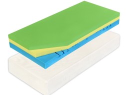 Pohodlný pamäťový matrac Curem s pevnejšou podporou a voliteľnou výškou 22/25 cm. 3 - vrstvová konštrukcia: 2 pamäťové a 1 pružná pena CuremfoamTM v špeciálnom poradí a pomeru.