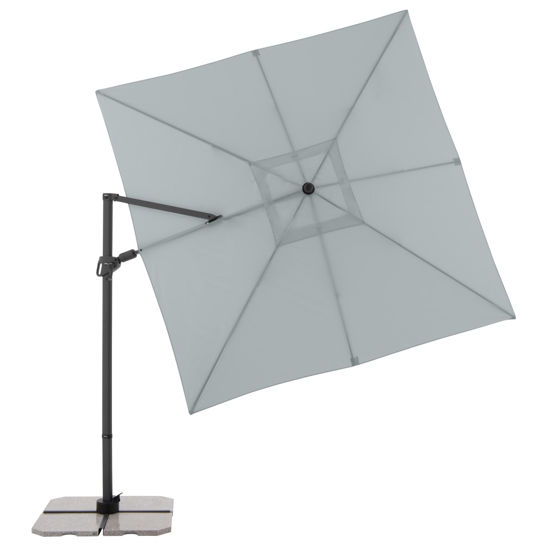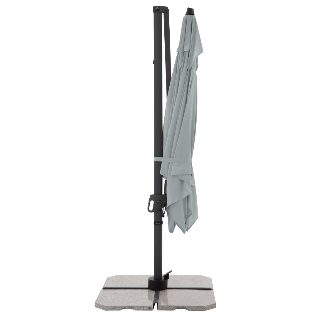 DERBY DX 280 x 280 cm – kvalitný záhradný slnečník s bočnou nohou svetlo šedá (kód farby 827)