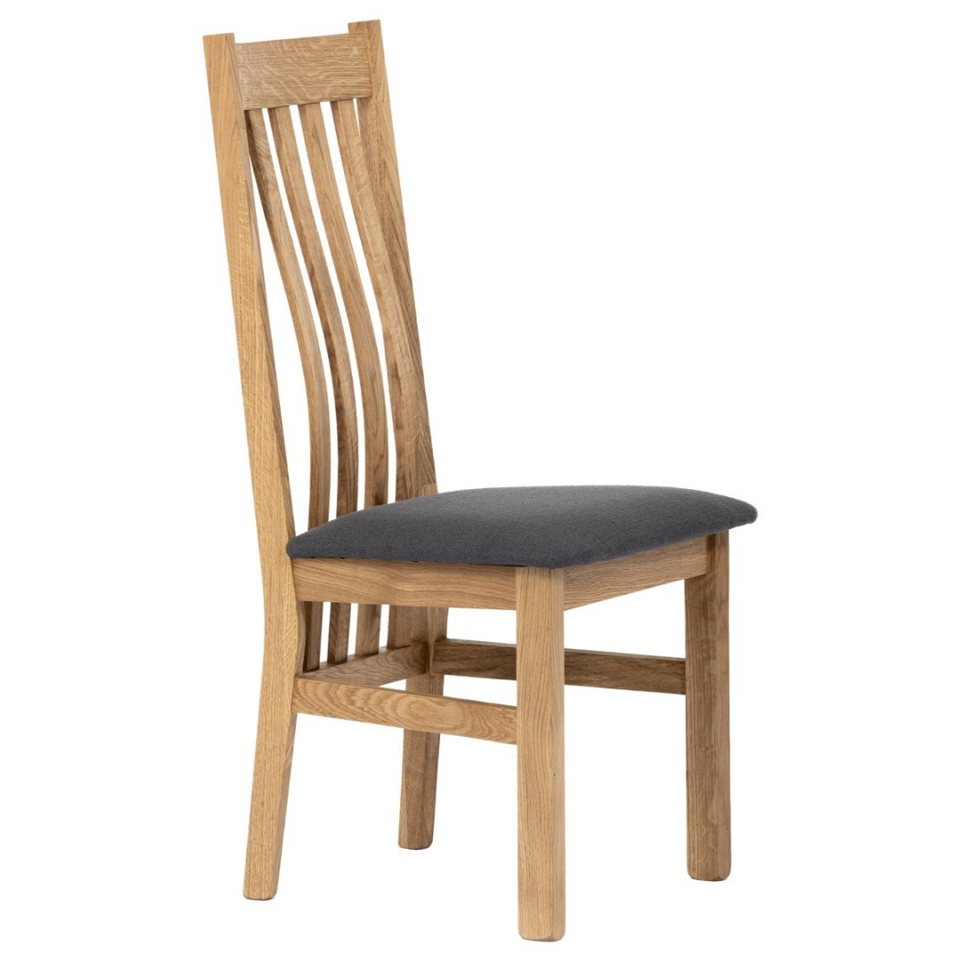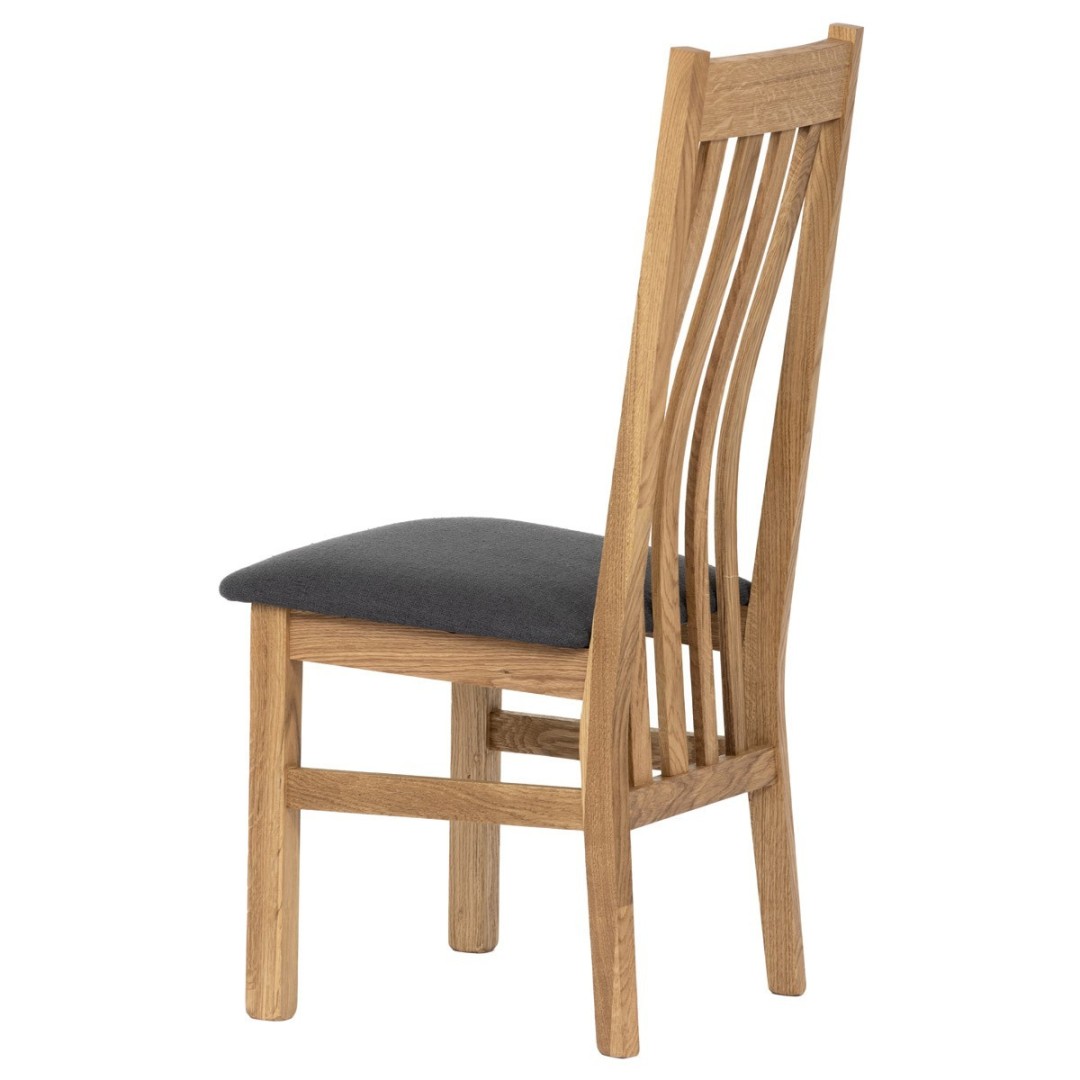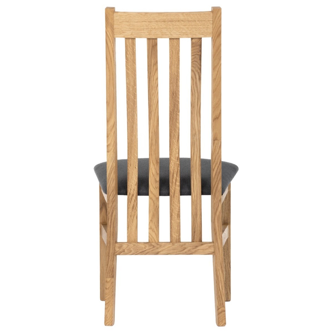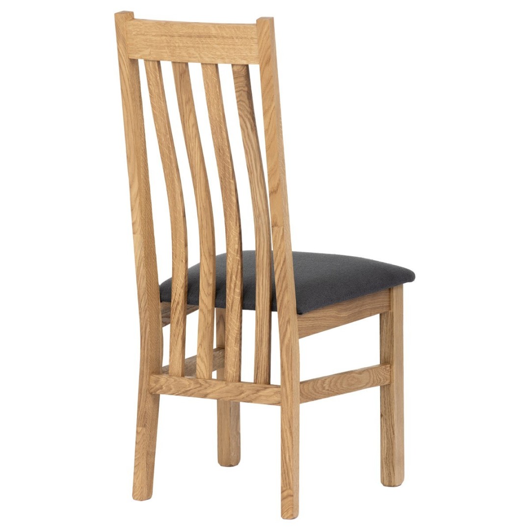 Jedálenská stolička z masívneho dubového dreva je demonštráciou dokonalej remeselnej práce. Zaujme nielen svojim rustikálnym štýlom, ale aj perfektným spracovaním. Štýl vychádza z minimalistického severského designu, v temnejšom nádychu prírodného odtieňa. Táto farebnosť skvele vykreslí roky duba a podčiarkne jej prevedenie. Čisté línie a vysoko kvalitné remeselné spracovanie dreveného masívu nastavuje očarujúce akcenty a podčiarkuje útulnú atmosféru v interiéri. Táto stolička vás pozýva nielen na odpočinok, ale aj na rozjímanie s rodinou a priateľmi, kde oceníte ergonomicky tvarované vzpery operadla, kopírujúce zakrivenie chrbtice.