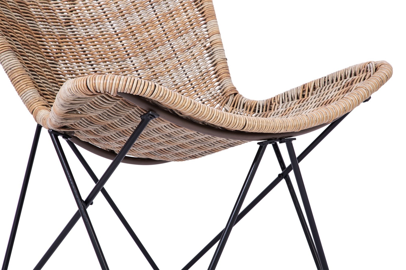 Nekonvenčné trojuholníkové nožičky zaujímavo kontrastujú s guľatejším vrškom kresla. Nadčasový dizajn s jemným výpletom sa rovnako dobre dá použiť v obývačke, na záhrade aj na balkóne.