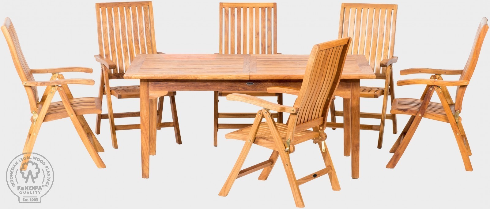| teak | drevo | jedálenské sety | pre 6 osob | rozkladacie | 130 kg |