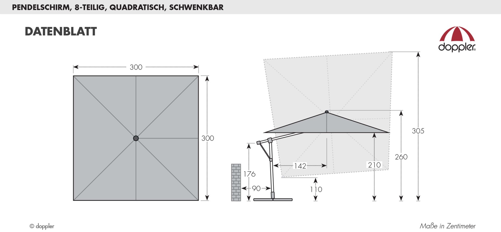 EXPERT 3 x 3 m – záhradný výkyvný slnečník s bočnou tyčou – ďalšie varianty