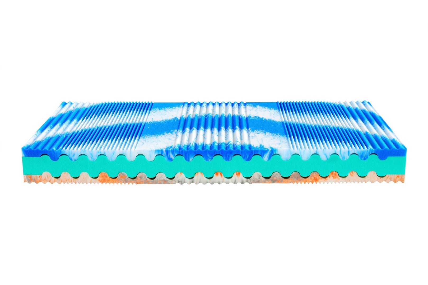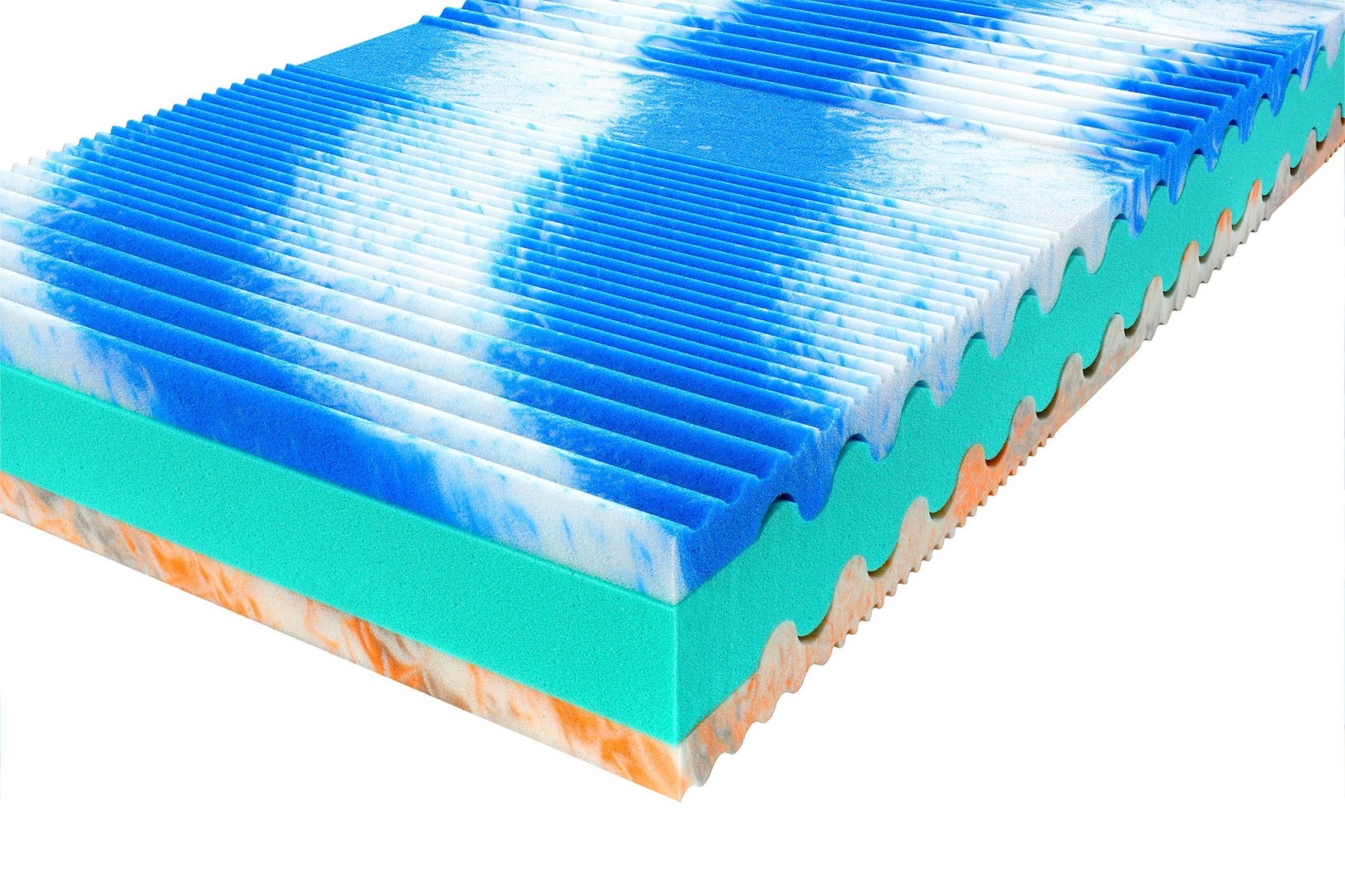 Gélová hybridná pena (modrobiely mramor) je príjemne chladivá a mäkko prispôsobivá.