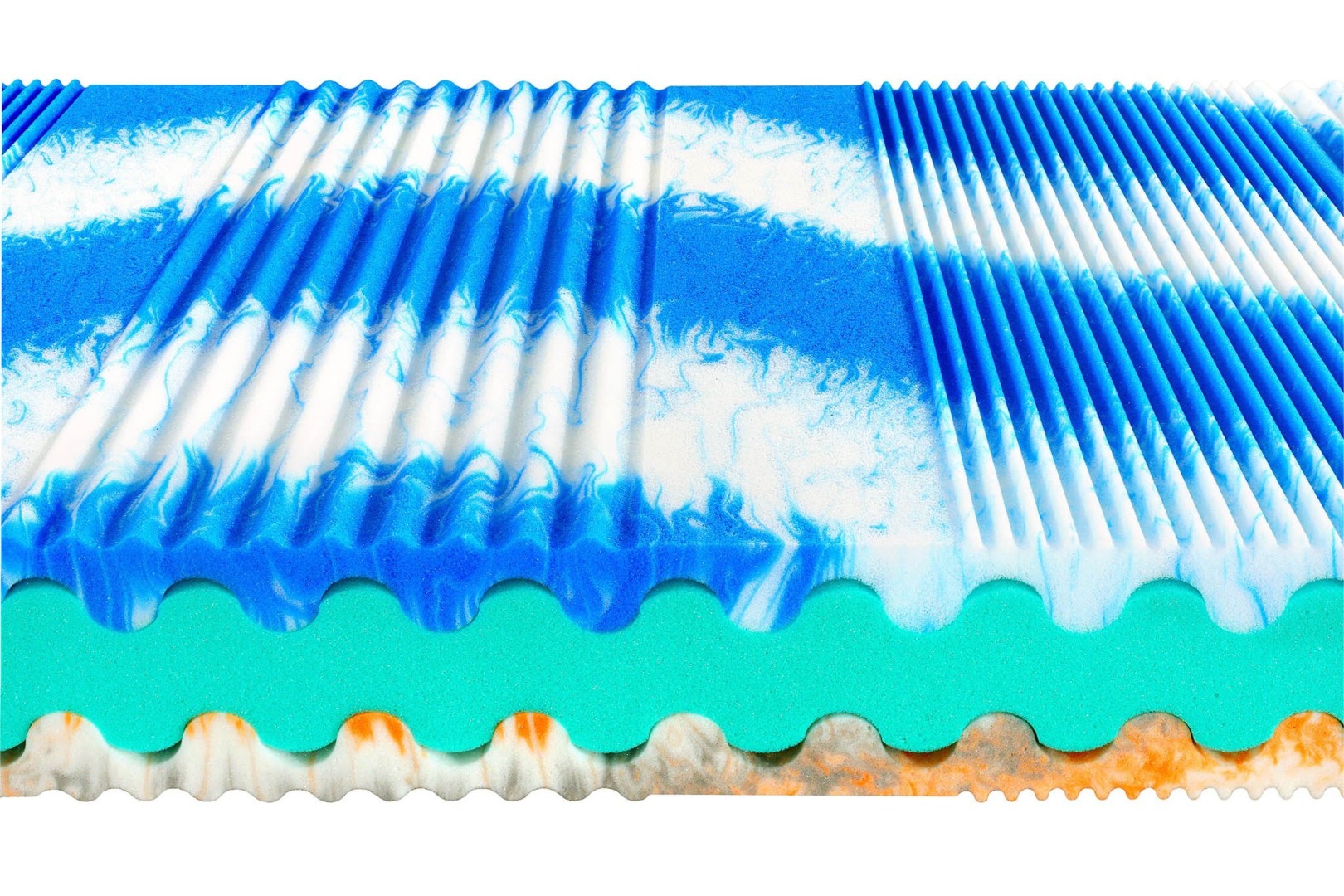 Profilovaná studená pena (v tyrkysovej farbe) – vzdušná, pružná a pevná.