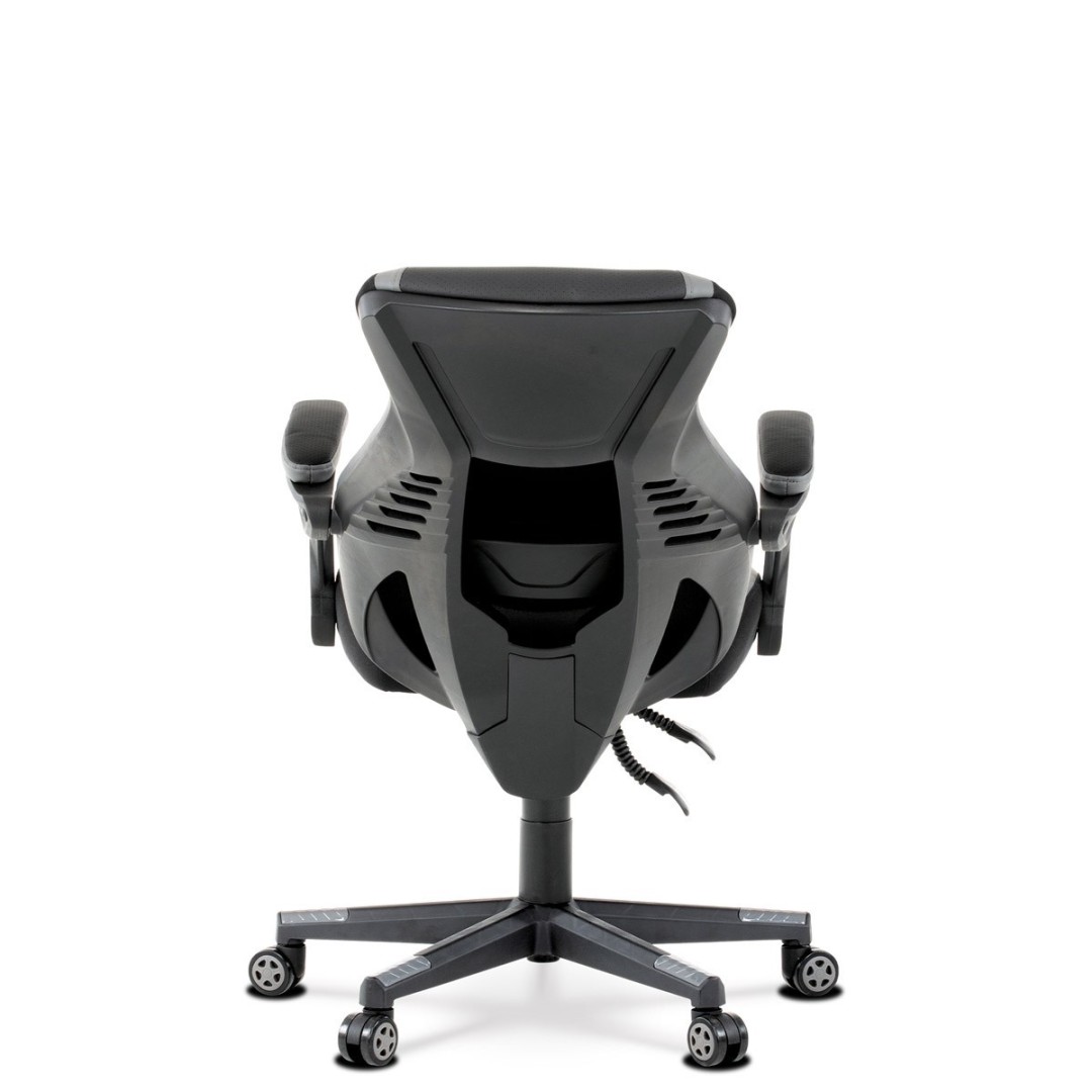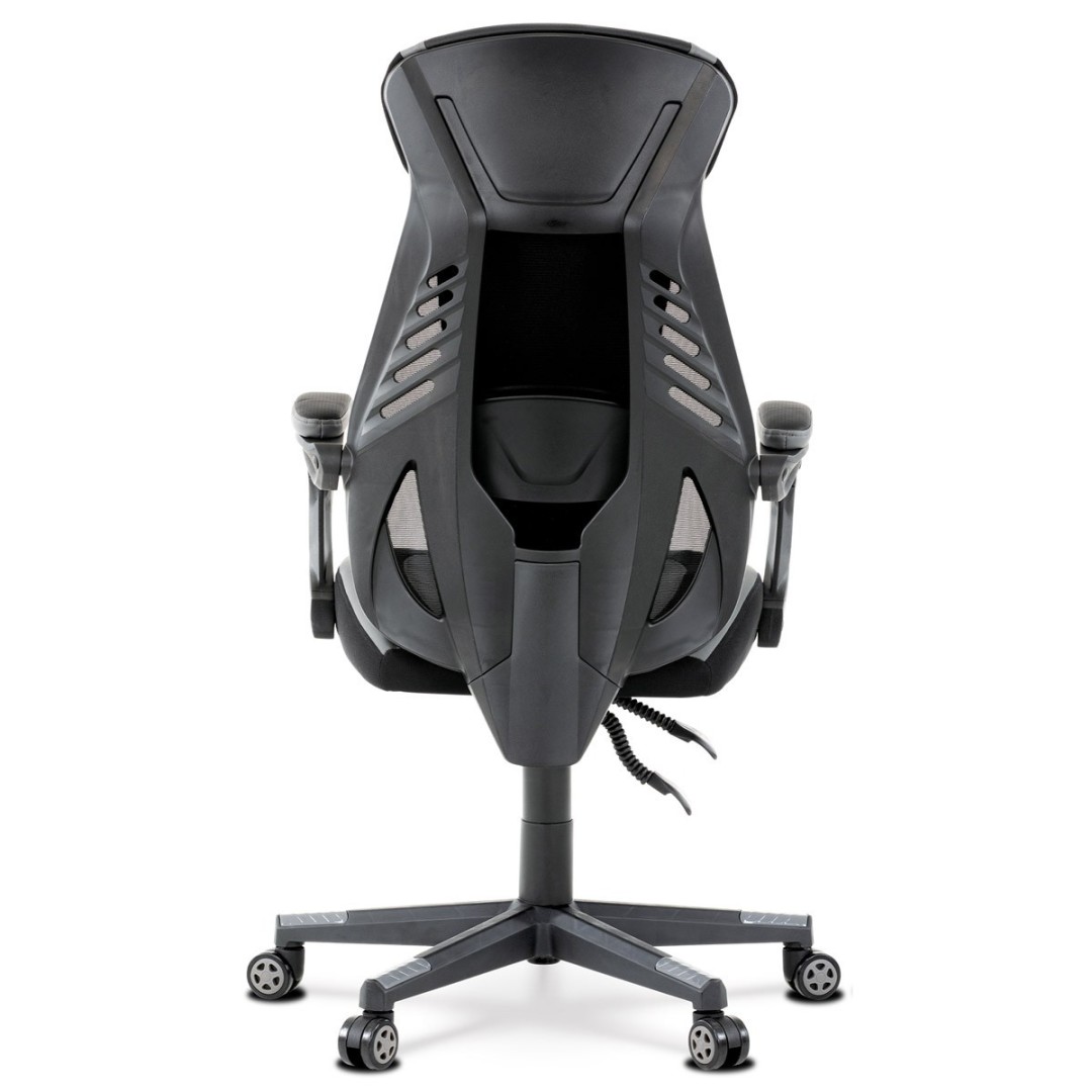 Poťah je kombináciou šedej a čiernej perforovanej ekokože na sedáku aj operadle, čiernej sieťoviny MESH a čiernej, jemne hrubej látky na sedáku aj bokoch opierky hlavy. Operadlo je čierny plastový výlisok vo futuristickom dizajne. Výplň sedadla aj hlavovej opierky je z veľmi kvalitnej a tuhej PU peny, vystuženie a pružnosť zaisťujú látkové popruhy.