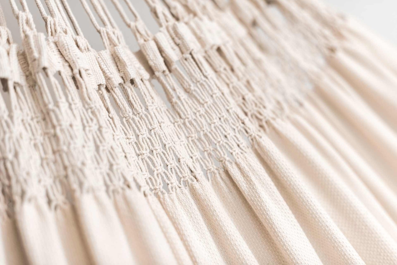 Vďaka špeciálnej technike tkania a diagonálnej a pružnej väzbe sa látka dokonale prispôsobí krivkám vášho tela. Rovnako ako ostatné brazílske siete Bossanovu zdobia Macramé a dekoratívne čipky na bokoch. Veľký počet závesných šnúr zaisťuje rovnomerné rozloženie váhy a vynikajúce pohodlie.