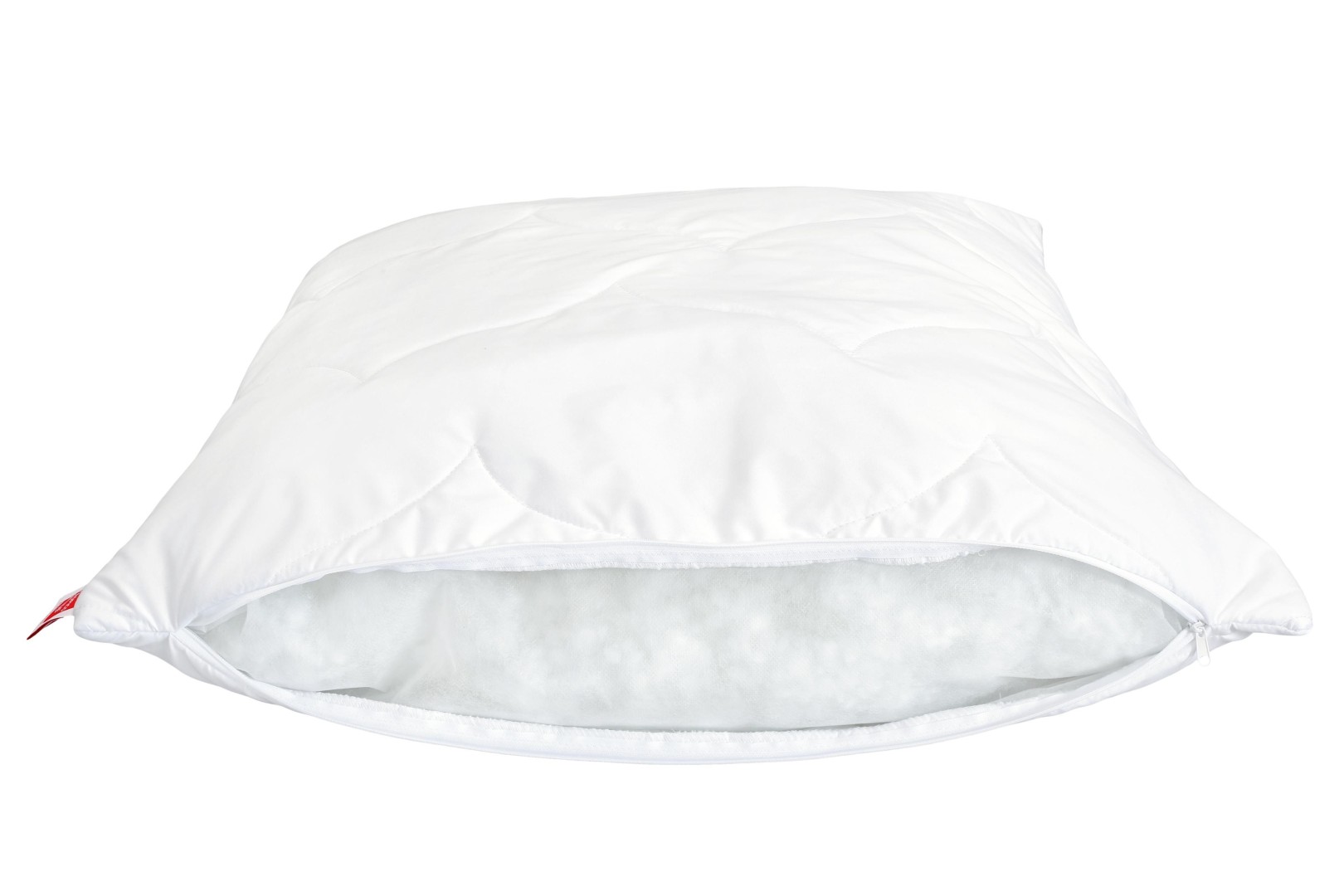 Povrchová tkanina z odolnej bielej mikrofázy je snímateľná s možnosťou prania na 60 °C. Je vybavená klimatizačnou vrstvou, ktorá je prešitá, aby vankúš dobre držal tvar.