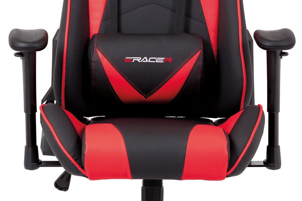 HERNÉ KRESLO s možnosťou POLOHOVANIA DO 180° - čierno-červená ekokoža - 74 x 125-133 x 70 cm