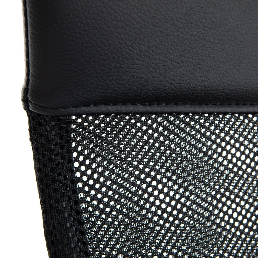 Vysoké trubkové operadlo s bedrovou opierkou je potiahnuté čiernou sieťovinou MESH a v hornej časti ako podhlavník slúži veľmi praktický poťah z čiernej ekokože. Použité materiály na sedadle aj chrbtovej časti operadla zaručujú dokonalú priedušnosť. Príjemný polstrovaný sedák je potiahnutý čiernou látkou MESH. Výplň je z kvalitnej PU peny, ktorá zaručuje príjemné dlhodobé sedenie.