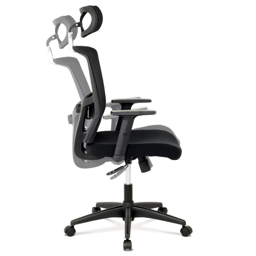Celoplastové operadlo so stredovou výstuhou v tvare V s nastaviteľnou bedrovou opierkou je potiahnuté čiernou sieťovinou MESH. Príjemný polstrovaný sedák je čalúnený čiernou látkou. Výplň je z kvalitnej PU peny, ktorá zaručuje príjemné dlhodobé sedenie.