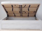 - U rozmeru 160x200 cm a 180x200 cm máte možnosť zvoliť aj prevedenie so zabudovaným výklopným roštom s pneumatickými piestami. Táto možnosť platí iba pre uvedené dva rozmery a je s príplatkom. Rošty sú upevnené k rámu postele. Prístup do úložného priestoru je u tohoto prevedenia od nôh.