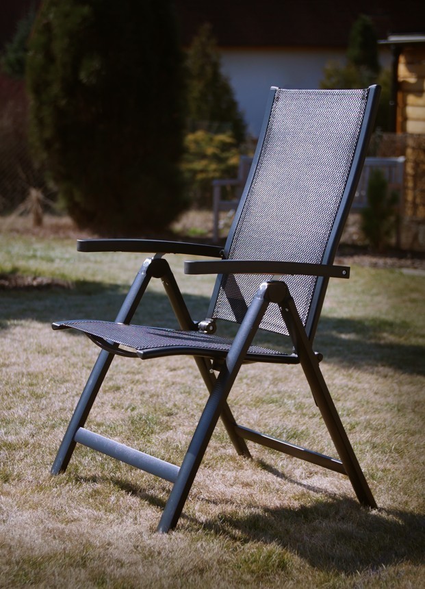 Polohovací a skládací křeslo se stabilní hliníkovou konstrukcí. Konstrukce křesla je ošetřena proti rzi. Sedák a opěrka zad z textilenu. Křeslo je vhodné do venkovních i vnitřních prostor. Elegantní design díky kterému zapadne prakticky kamkoliv.
