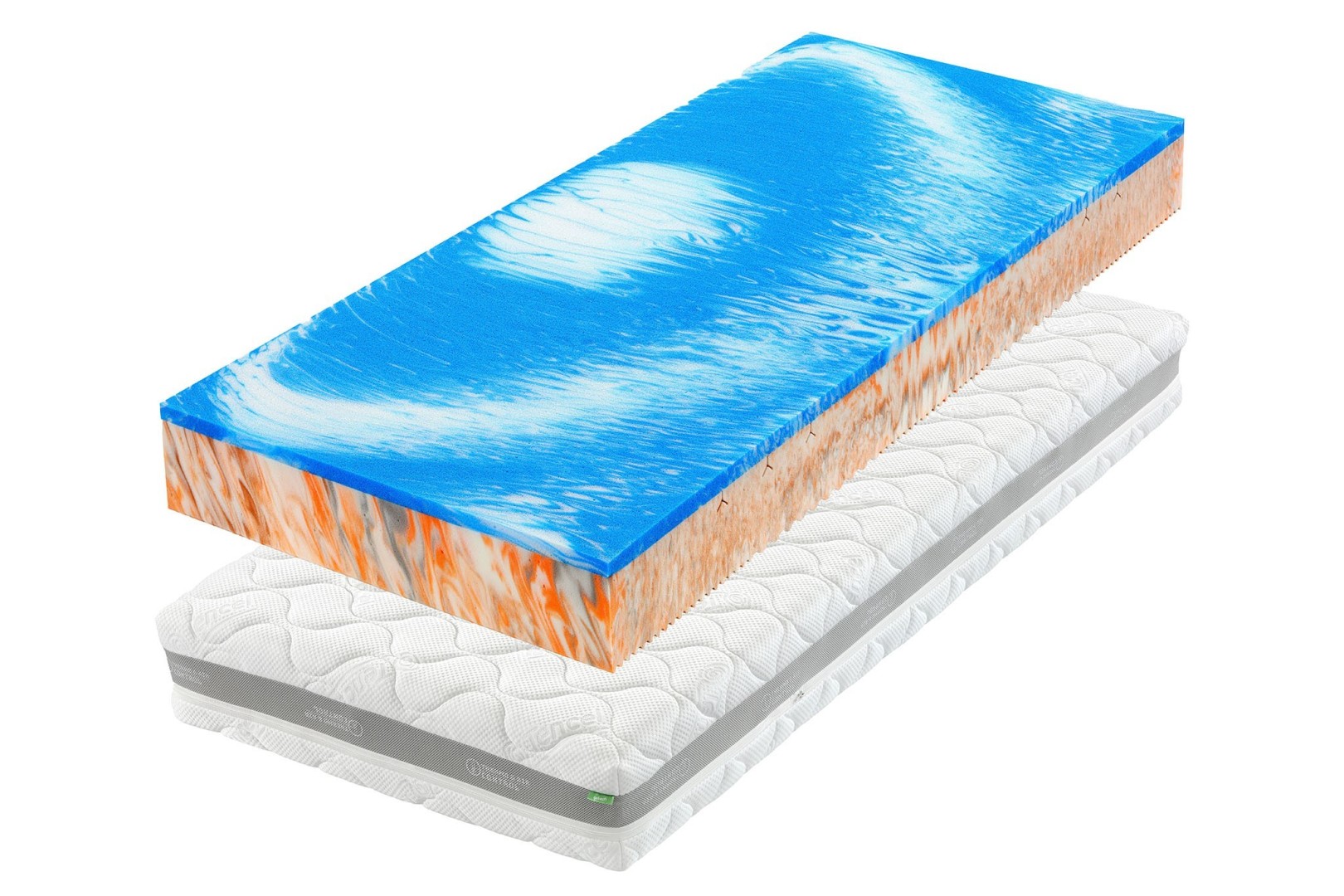 Pohodlný pamäťový matrac Curem s pevnejšou podporou a voliteľnou výškou 22/25 cm. 3 - vrstvová konštrukcia: 2 pamäťové a 1 pružná pena CuremfoamTM v špeciálnom poradí a pomeru.