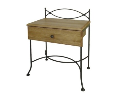 Nočný stolík s drevenou zásuvkou a kovanými detailmi v dizajne postele Tholen, aby vám všetko pekne ladilo.