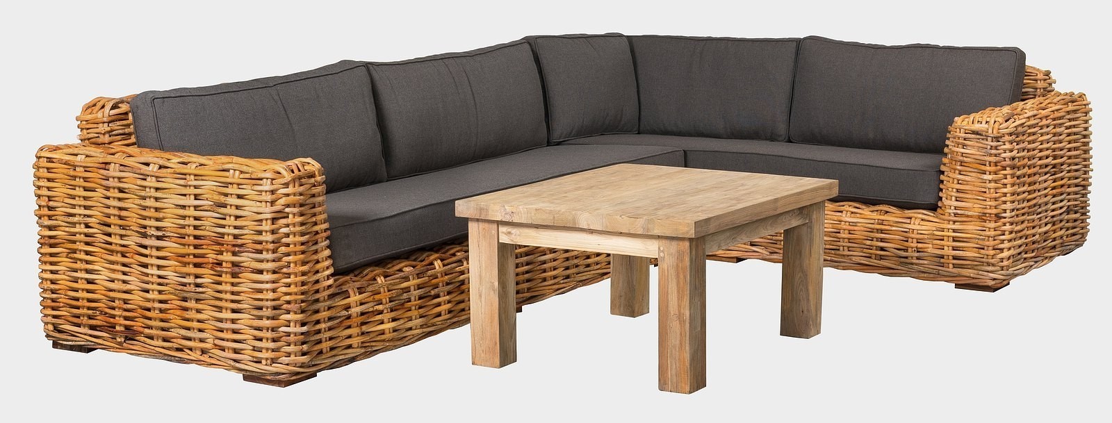 Luxusní ratanová sedací souprava NURU - levý roh s výpletem z přírodního 15 mm silného ratanu mandola.
