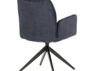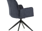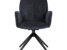 Nohy stoličky, usadené na robustnej stredovej základni, majú povrchovú úpravu z výrazného čierneho kovu, ktorý nápadne kontrastuje s mäkkým čalúneným sedákom. Táto sofistikovaná konštrukcia zaisťuje stabilitu a odolnosť, takže je vhodná na sedenie takmer pri každom pracovnom alebo jedálenskom stole. Moderný štýl stoličky podčiarkuje praktická funkcia otáčania o 90°, ktorá umožňuje ľahký pohyb a všestrannosť v akomkoľvek pracovnom priestore alebo jedálni. Nosnosť stoličky je 120 kg.
