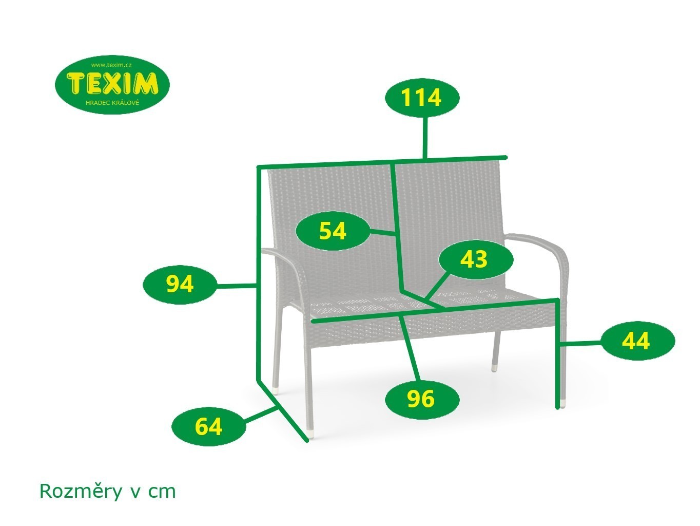 - rozmery: 64 x 114 x 94 cm (h x š x v)