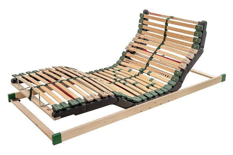 Extra plochý lamelový rošt s motorovým polohovaním a prístupom k úložnému priestoru. S lamelami uloženými nad bočnicou pre ešte väčšiu pružnosť. Nastavenie tuhosti v bedrovej oblasti, v oblasti ramien zmäkčené lamely.