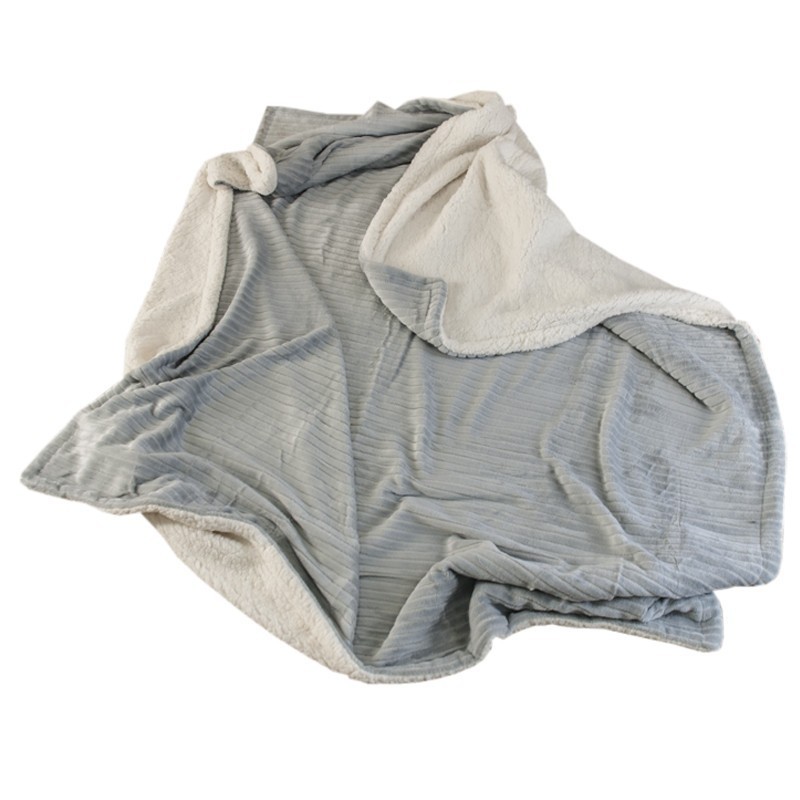 Přikrývka 125 x 150 cm. Přikrývka pro pohodlnější posezení na balkóně, terase nebo zahradě. Oboustranné provedení ve světlé šedé / přírodní barvě.