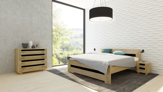 - Posteľ je vyrobená z kvalitného dubového masívu o sile 2,7 cm v cink-parketovom dizajne (napájaný vzor).