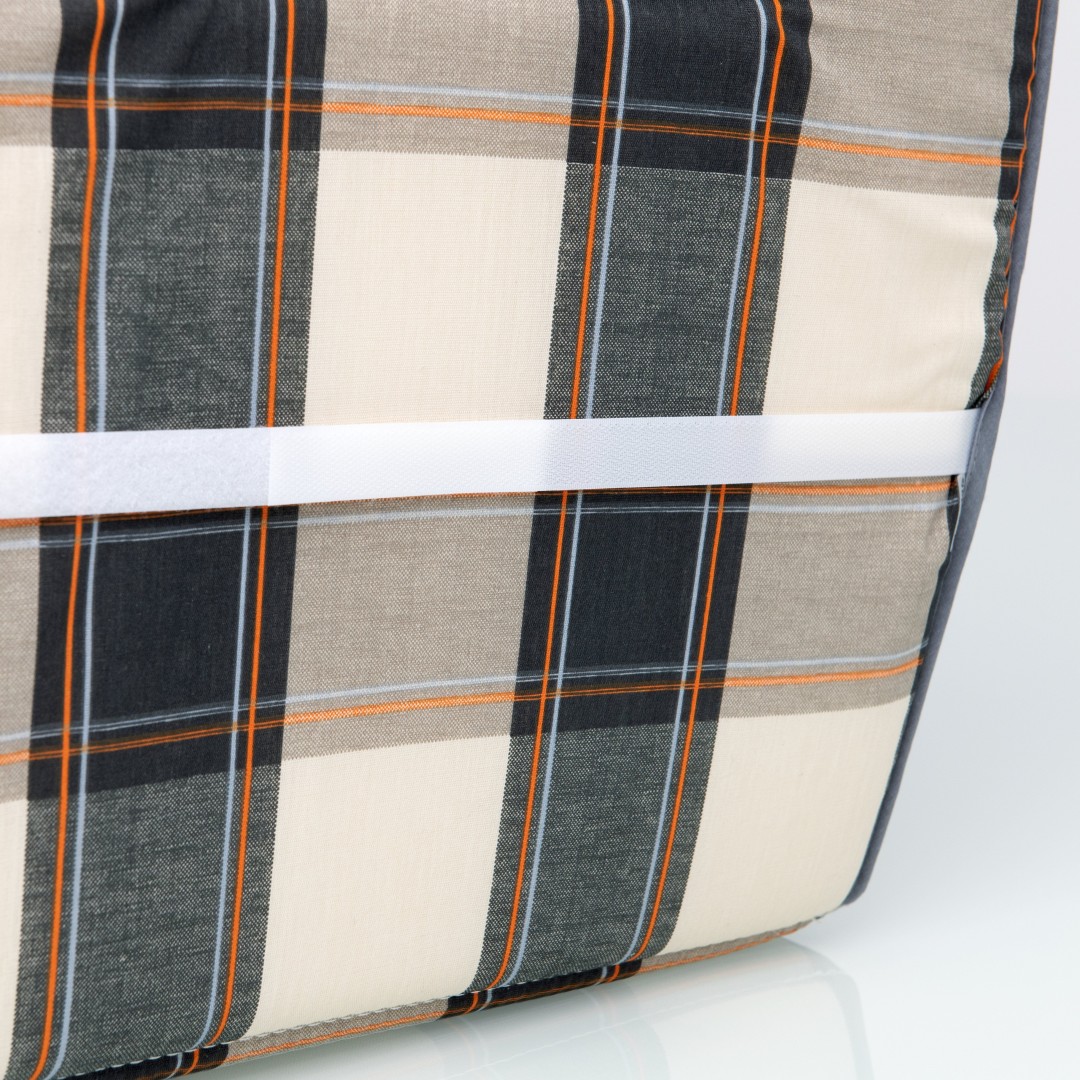 Polster SPOT je v prevedení s lemovanou stuhou vo švíkoch a so zaoblenými rohmi, prešitie 1x v operadle. Uchytenie pomocou suchého zipsu v spodnej tretine operadla. Poťah polstra je nesnímateľný. Odporúčame na stoličky so zaobleným okrajom chrbtovej opierky.