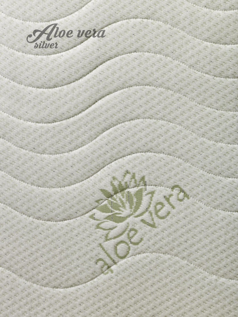 - Poťah ALOE VERA SILVER je vyrobený z hypoalergénnych materiálov najvyššej kvality. Ideálne riešenie pre alergikov a osoby s jemnou pokožkou. Vďaka materiálu, ktorý obsahuje účinný extrakt z listov Aloe Vera poťah vytvára príjemná pocit chladu a je príjemný pre pokožku užívateľa. Poťah je prešívaný aktívnym striebrom, ktoré sa vyznačuje perfektnými antibakteriálnymi vlastnosťami. Ióny striebra prirodzene zabíjajú roztoče, spóry húb a plesní, vďaka čomu dlhodobo udržiavajú matrac hygienicky svieži a bez zápachu. Strieborné prešívanie v kombinácii s látkou Aloe Vera navyše matracu dodáva antistatické vlastnosti a atraktívny vzhľad. Poťah je odzipsovateľný, delený na 2 časti a pratelný na 60°C. Poťah ma úpravu proti žmolkovaniu.