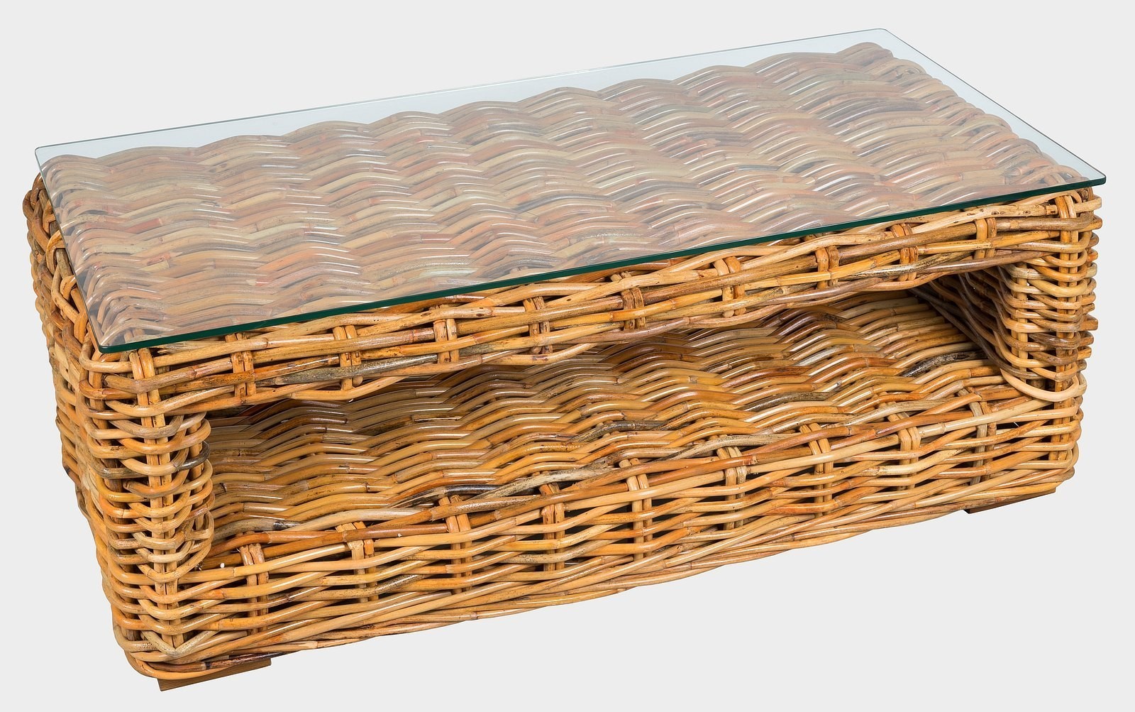 Stolík z prírodného ratanu so sklom 140 x 70 cm