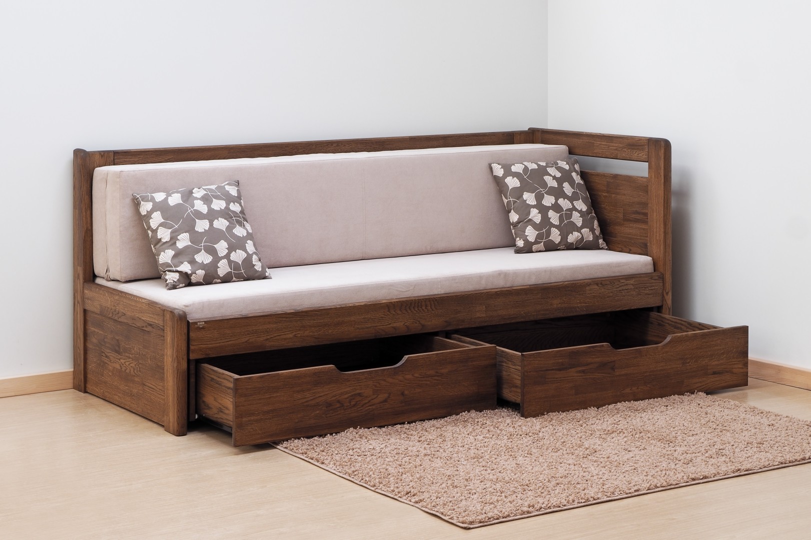 TANDEM HARMONY s roštom a úložným priestorom 80 x 200 cm - rozkladacia posteľ z dubového masívu