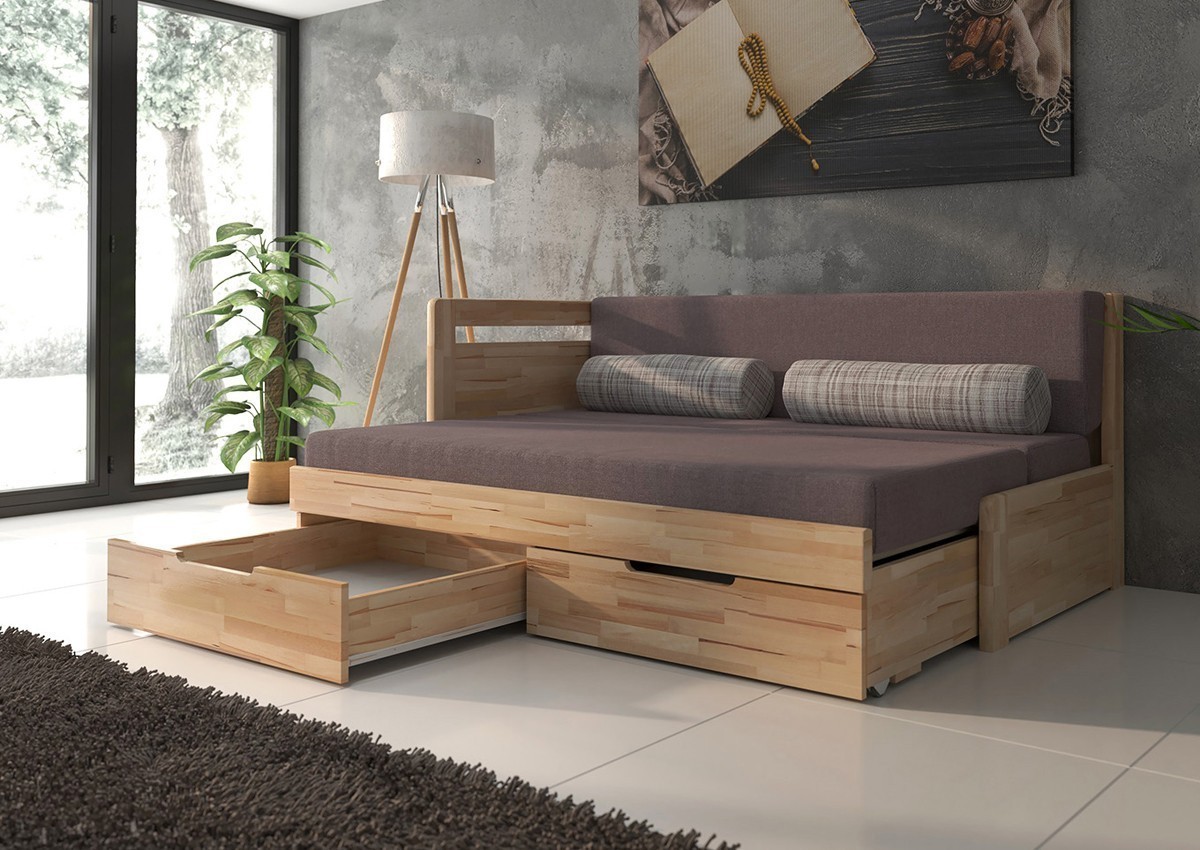 TANDEM HARMONY s roštom a úložným priestorom 80 x 200 cm - rozkladacia posteľ z bukového masívu