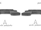 Rohová sedacia súprava Aller U XXL je k dispozícii v ľavej aj pravej verzii. Pre určenie strany sa na pohovku pozrite spredu: pokiaľ je operadlo na pravej strane, jedná sa o pravú pohovku; pokiaľ je na ľavej, jedná sa o ľavú verziu.