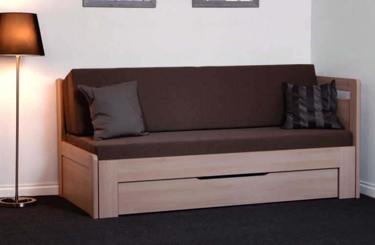 Úložný priestor k posteli TANDEM plus tvorí jedna dlhá zásuvka, ktorú je možné ľahko vysúvať. Úložmý priestor k posteli TANDEM plus tak ponúka možnosť praktického a hygienického uloženia lôžkovín či rôznych drobností.