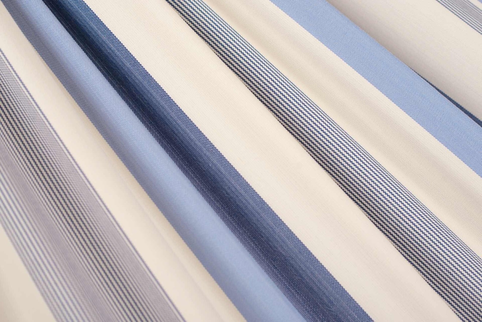 | látka: 100% polypropylén / tyč: bambus / otočný čap: nerezová oceľ | 160 kg | 170 cm | relaxačné | 140 cm | biela + modrá | vodeodolná |